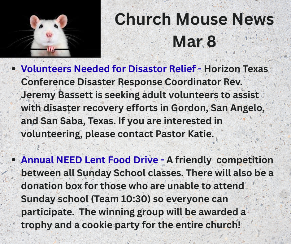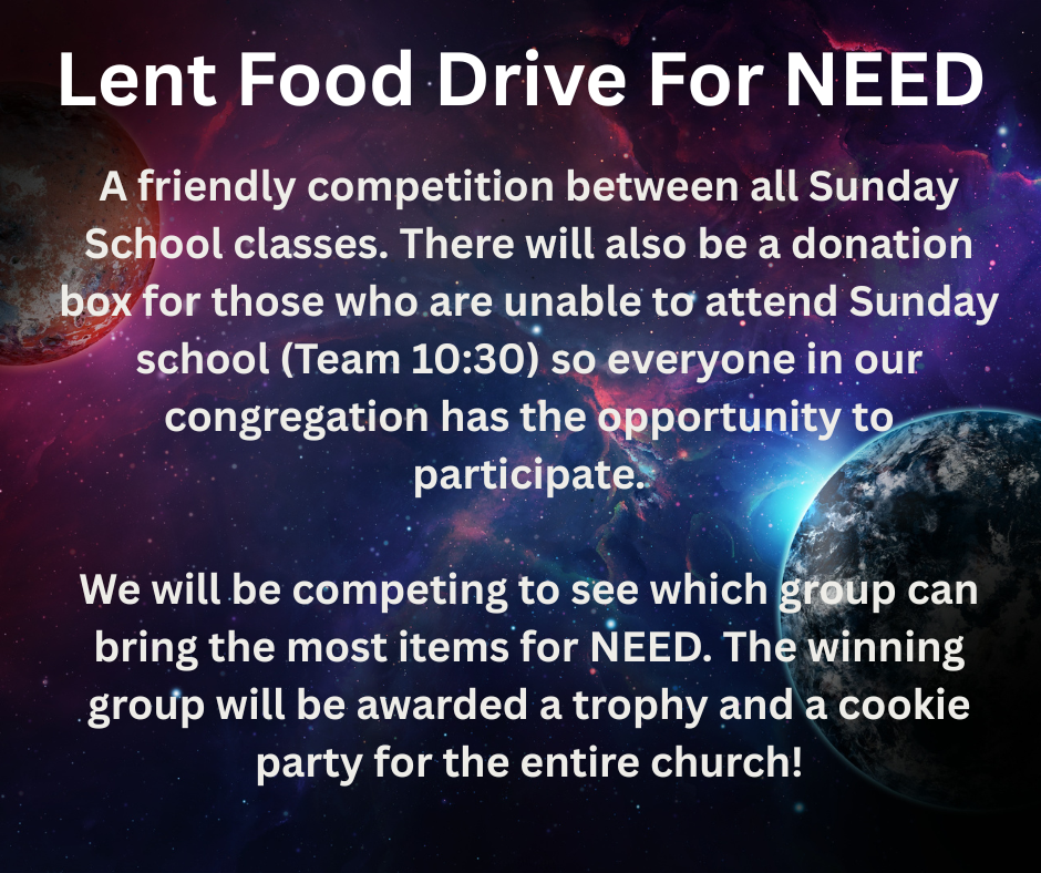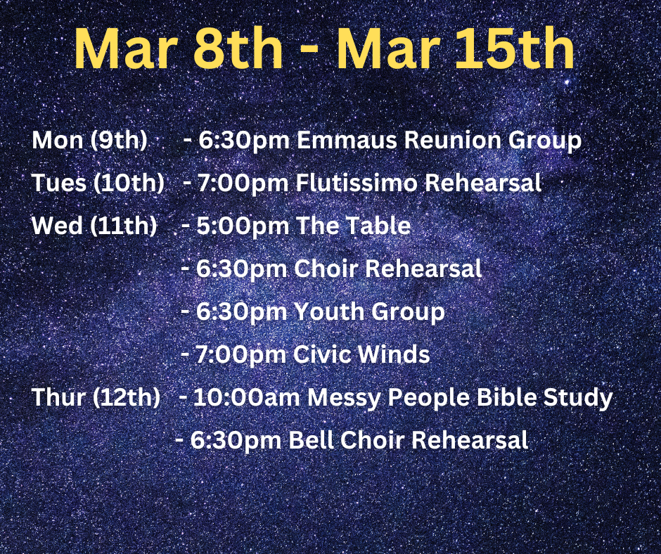 Would like to help prepare a meal for the Wednesday Table? We sure could use your help. Please contact the church office if you are available to cook some Wed evening. Budget for the food is provided by the church.